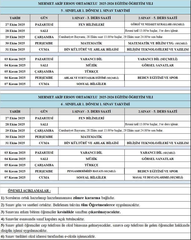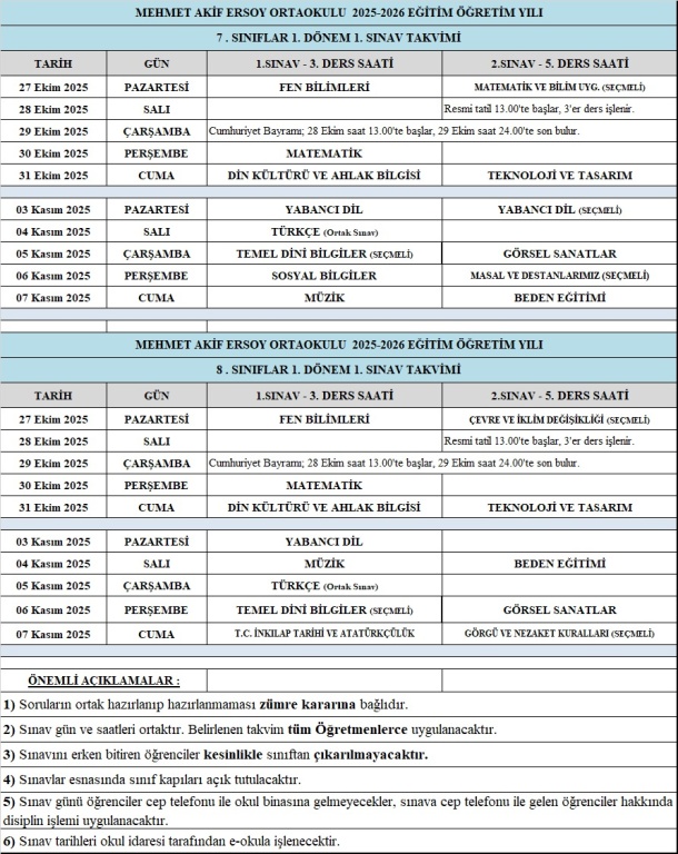 1. Dönem 1. sınav tarihleri belli oldu !